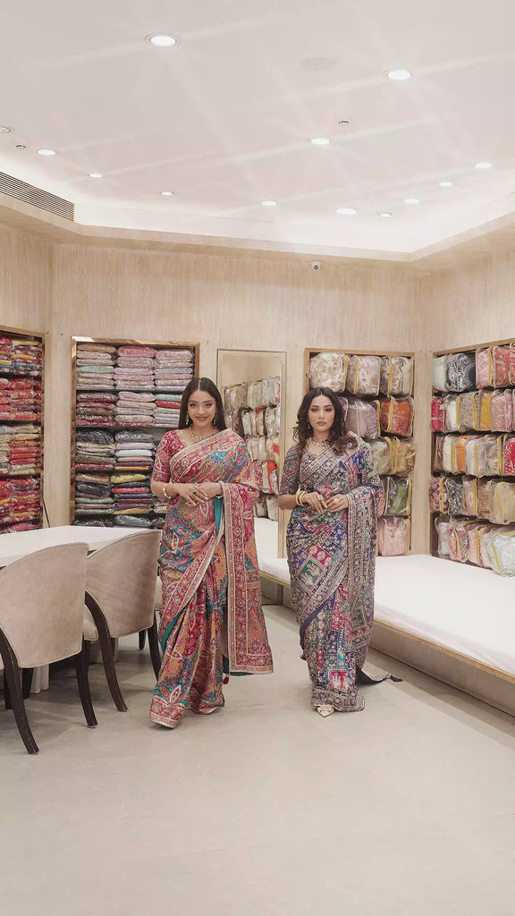 In StockIn StockOut of stockType: Ranquard positioned print vegan saree with intricate sequins aari embroidery
